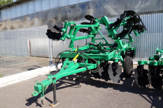 Дисковый агрегат оборудован дисками ромашка, которые имеют острую кромку по всему периметру, прекрасно измельчают стебли послежатвенных остатков и сорняков, равномерно распределяют их по всей глубине обработанного слоя почвы, что приводит к распаду органических веществ без минерализации и предотвращает окисление почвы.