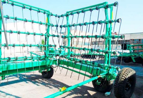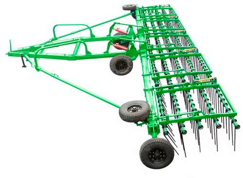 Большая длина пружинных двойных зубцов и регуляция угла наклона в пределах 45 - 90 градусов позволяет возделывание почв разной влажности и твердости с большим количеством послежатвенных остатков. Положение опорных колес регулируется в вертикальной плоскости, что позволяет компенсировать износ рабочих органов и обеспечивает большой срок их службы.