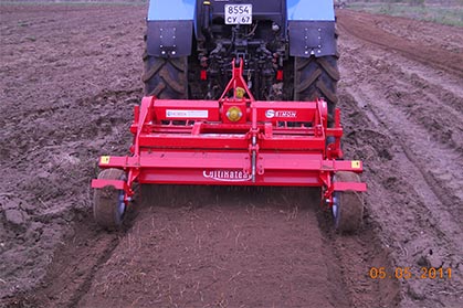 При возделывании моркови в промышленных масштабах (от 30 га) и в засушливых районах, где необходимо сохранить влагу в гряде, для подготовки к посеву применяется специализированный культиватор — Cultirateau.