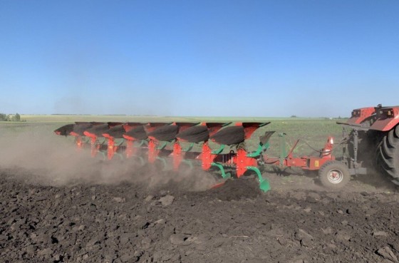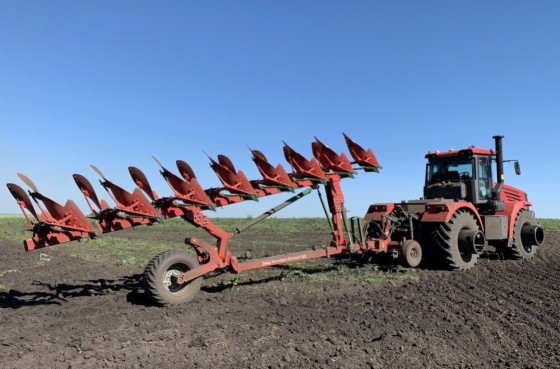Идеальный вариант плуга для вспашки вне борозды с двойными колесами трактора.