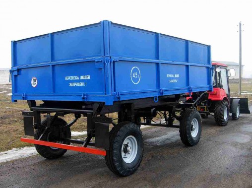 рицеп 2ПТС-4,5 предназначен для перевозки различных сельскохозяйственных грузов по всем видам дорог и в полевых условиях. Допускается перевозка на прицепе 2ПТС-4,5 сыпучих строительных грузов, за исключением скальных пород и булыжника. Для увеличения объема перевозимых грузов (увеличения кубатуры прицепов) используются надставные борта. Надставные борта предусмотрены двух видов: цельнометаллические и сетчатые.