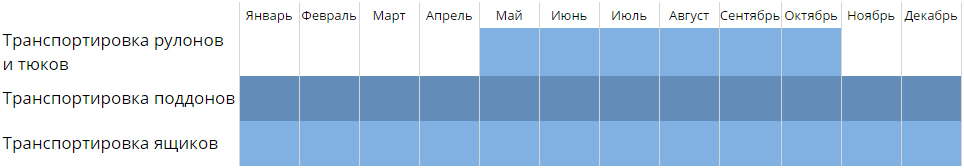 При использовании для перевозки рулонов, вместимость - 22 шт. (при размере рулона 1200x1200 мм).
