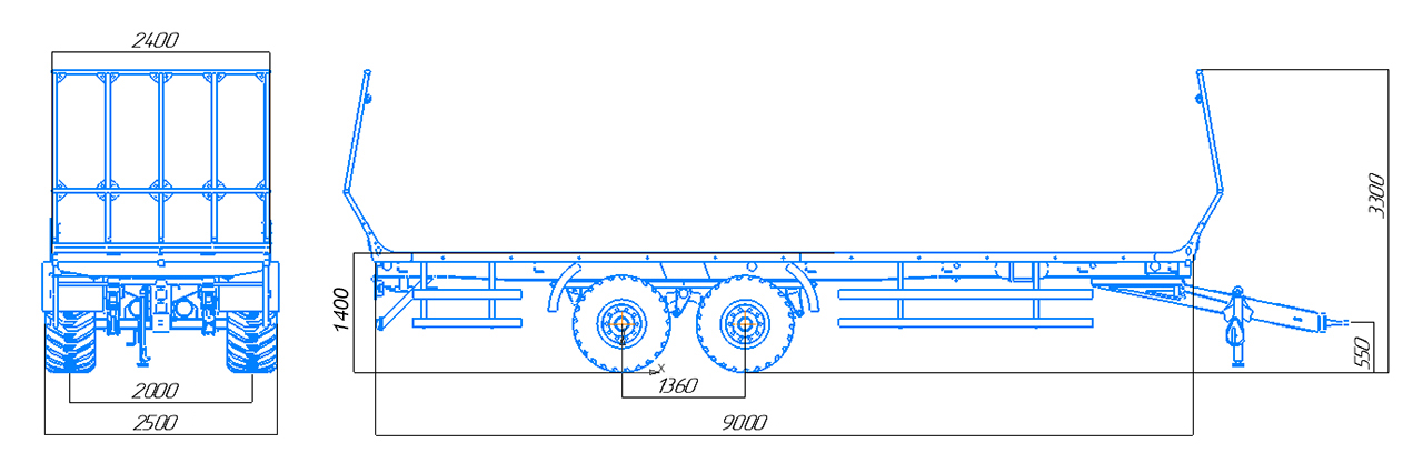 | ширинa | 2450 мм (с уширителями - 3200 мм) |