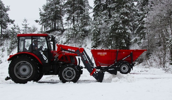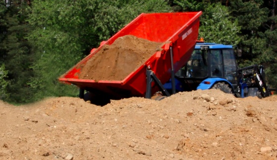 Герметичный универсальный прицеп. Позволяет перевозить множество типов грузов, от зерна до песка. Мгновенная разгрузка за счет наклона почти под прямым углом.