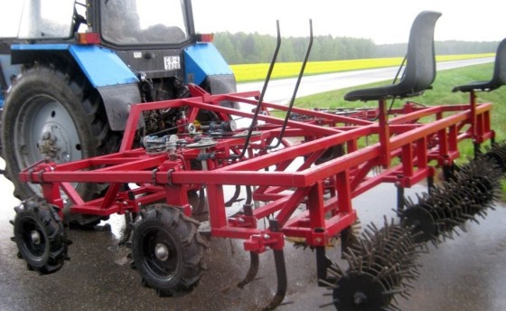 1. Рыхление почвы междурядий осуществляется установленными в два ряда стрельчатыми лапами.