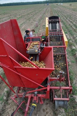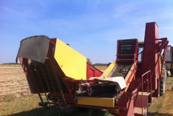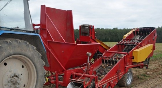 Комбайн картофелеуборочный ККУ-1 предназначен для механизированной уборки картофеля на легких и средних почвах, засоренных камнями до 28 т/га. Высокоэффективная система отделения ботвы, комков и камней благодаря усовершенствованным элеваторам и шиповым полотнам позволяет проводить уборку урожая в самых неблагоприятных условиях с минимальным повреждением клубней.