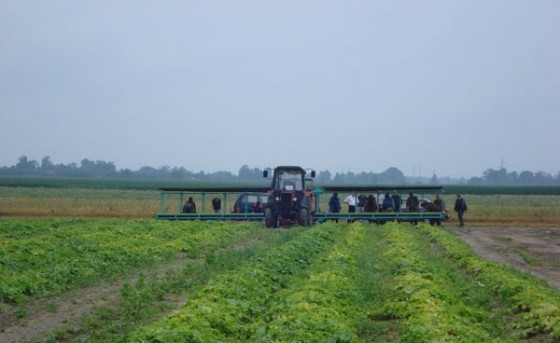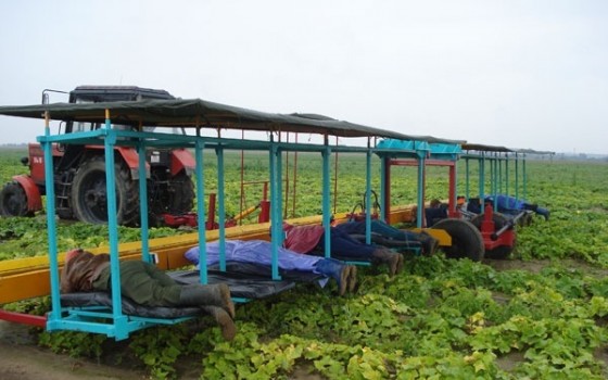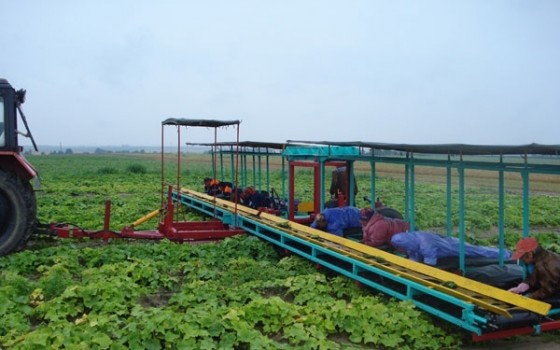 Универсальная платформа предназначена для уборки огурцов (овощей) и загрузки их в тару или транспортное средство непосредственно во время уборки в поле. Агрегатируется с трактором класса 1,4 с ходоуменьшителем.
