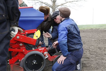 Отличительной особенностью данной модели является то, что посев осуществляется практически в зоне опорных колес высевающей секции.