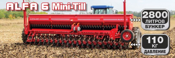 Зернотуковая сеялка ALFA 6 с двухдисковыми однострочными сошниками и прикатывающими катками предназначена для рядового посева семян зерновых, мелко- и среднесеменных зернобобовых и других культур, близких по размерам и нормам высева к семенам зерновых культур с одновременным внесением в засеваемые рядки гранулированных минеральных удобрений и рядковым прикатыванием грунта после минимальной или традиционной обработки почвы. Создана с учётом современных конструкционных решений, которые дают возможность существенно снизить себестоимость производимой сельскохозяйственной продукции на рынке.
