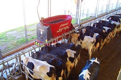 Сегодня, пожалуй, самой продвинутой и эффективной системой кормления являются автономные роботы-кормораздатчики. Семейство автономных роботов-кормораздатчиков Triomatic серии T могут быть легко встроены в существующие системы кормления. Роботы Triomatic серии T для смешивания и раздачи кормов имеют два вертикальных перемешивающих шнека, электронную систему смешивания, поперечный транспортёр для выгрузки влево и вправо, скользящий механизм отбора мощности и страховочный бампер, надежный привод с системой позиционирования и рабочий объем 3 м куб.