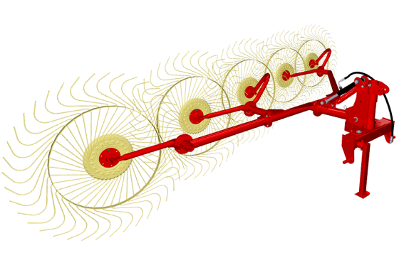 - Навесная конструкция, компактные размеры и, соответственно, высокая маневренность граблей позволяют использовать их на полях с небольшой площадью и сложной формой;