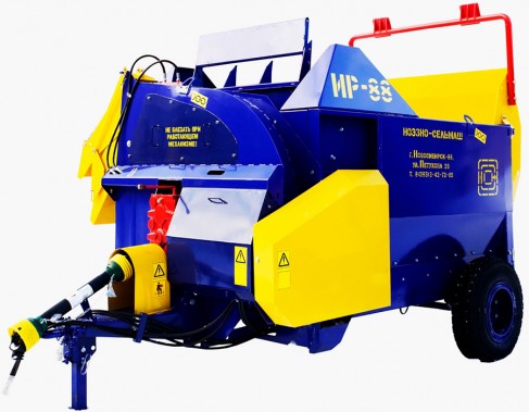Полуприцепной измельчитель-разбрасыватель рулонов (грубых кормов) ИР-8 предназначен для измельчения грубых кормов (рулонов или тюков соломы и сена), а также сырого и уплотнённого материала в рулонах и блоках. Измельчённая масса может, как раздаваться в кормушки и на кормовой стол, так и использоваться для приготовления и разбрасывания подстилки для КРС в животноводческих помещениях.