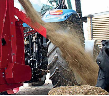 Двухскоростная коробка передач, при ВОМ 540 об./мин., позволяет использовать большую скорость для выброса соломы на большее расстояние, а малую скорость для выгрузки силоса в кормушки.