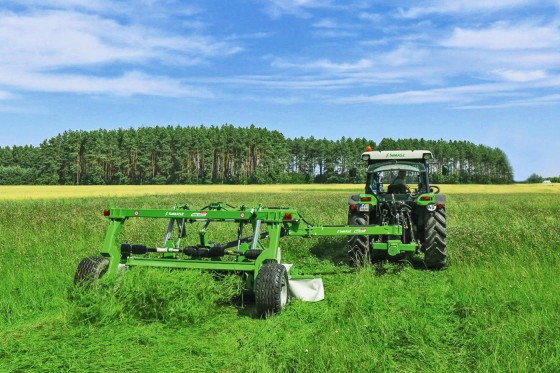 Полуприцепные дисковые косилки KDC предназначены для скашивания больших территорий. Длинное дышло косилки дает возможность работать как с правой так и с левой стороны трактора, что позволяет существенно экономить время при встречных покосах . При повторном проезде покос можно уложить поверх предыдущего покоса, либо сбоку. Косилки могут быть оборудованы вспушивателем покоса либо плющильным аппаратом. Каждая косилка дополнительно может быть укомплектована ленточным транспортером.