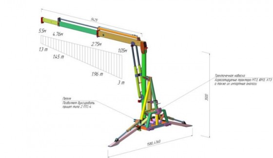 Кран-манипулятор рассчитан на крепление к тракторам отечественных заводов-изготовителей – ХТЗ, ЮМЗ, МТЗ, но возможна сцепка с аналогичными импортными моделями. Подключение происходит благодаря штатной гидросистеме, которой оснащен трактор.