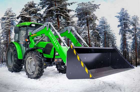 Навесной фронтальный погрузчик «Универсал DEUTZ FAHR» подходят для любых видов погрузочно-разгрузочных работ, с массой груза от 1000 кг до 1800 кг. Погрузчики этой модели используются в сельском хозяйстве, а также при проведении лесозаготовительных, коммунальных, дорожных и строительных работ. Агрегатируются с тракторами Agrolux 4.80 и Agrofarm 115G. Стрела погрузчика изготовлена из 6-ти миллиметровой высококачественной стали. Толщина стенки стрелы на уязвимых участках стрелы сечение составляет 12 мм, что повышает прочность рамы стрелы на 15%.