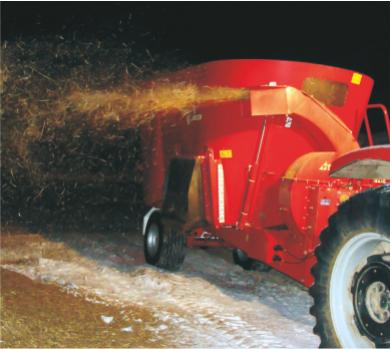 Основные функции смесителя: подготовка и раздача кормовых смесей, а также измельчение и разбрасывание соломы на 15-18 метров.