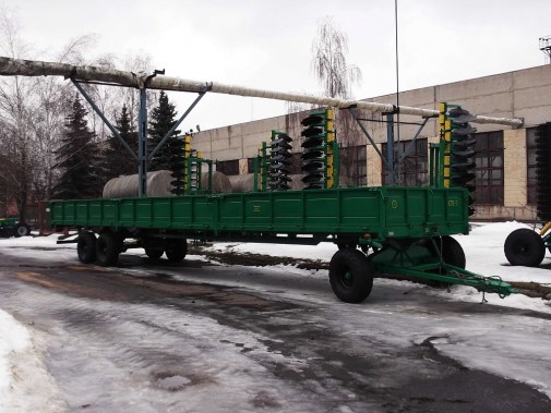 Средство агрегатируется с колесными тракторами класса 1,4 —2,0, оборудованными тягово-сцепным устройством ТСУ-2 (гидрокрюк), пневмоприводом тормозов, розеткой для подключения светосигнального электрооборудования.