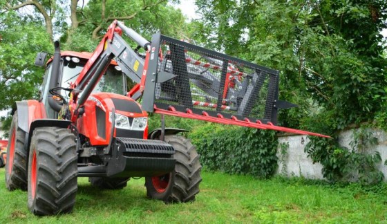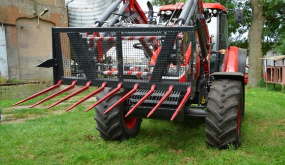 Универсальное оборудование, позволяющее перемещать солому в рулонах и навоз. Общая грузоподъемность - до 650 килограмм. 9 пальцев, перевозимый объем до 0,34 кубометров.