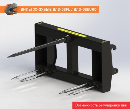 Для удобного подбора, перемещения и укладки рулонов сена или соломы установите на свой погрузчик FRONTLIFT трёхзубые вилы. 3 пики отличаются высокой прочностью и гарантируют безопасную работу.