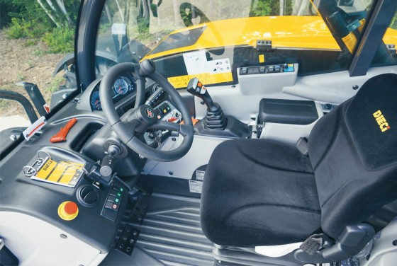 Телескопический погрузчик DIECI AGRI STAR 37.7 оснащен гидростатической трансмиссией, что позволяет работать на медленной скорости и с двигателем на полном газу. Расположение цилиндра внутри стрелы улучшает видимость и безопасность эксплуатации. Погрузчик обладает комфортабельной кабиной, которая по желанию покупателя может быть оснащена улучшенной системой кондиционирования воздуха, а так же сидениями с автоматической подвеской.