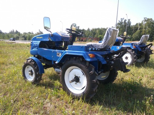 Основным преимуществом данной модели перед другими тракторами этого же класса является надежный и проверенный нашим суровым климатом дизельный двигатель жидкостного охлаждения, мощностью 12 л.с. со стартером, полноценная КПП с блокировкой и мягким переключением передач, фреза и плуг в комплекте, стандартное одноточечное навесное оборудование совместимое с другими производителями.