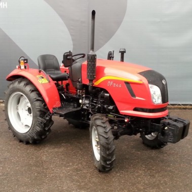 В базовой комплектации трактор Dongfeng DF-244 NEW оснащается экономичным, четырехтактным,3-х цилиндровым дизельным 24-ти сильным двигателем (КМ 385BT) водяного охлаждения, полноприводной (4х4) механической трансмиссией (с пониженным рядом и блокировкой заднего дифференциала), счетчиком моточасов. За функционирование гидравлической системы трактора Донг Фенг ДФ-244 в новом дизайне отвечает гидронасос, критическим давлением 14 МПа. Дополнительно в базовую комплектацию входит: задний вал отбора мощности (ВОМ), задняя 3-х точечная навеска, задний гидравлический распределитель с джойстиком управления с 2-мя коннекторами (гидровыходами). Дополнительно можно до установить: фронтальные противовесы, козырек и дугу безопасности.