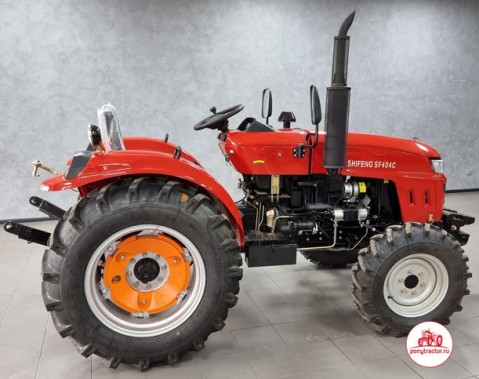 Shifeng (Шифенг) SF-404C без кабины красного цвета оснащается экономичным, четырехтактным, 4-х цилиндровым дизельным 40-ка сильным двигателем (YND 490BT) жидкостного охлаждения, полноприводной (4х4) механической трансмиссией (с пониженным рядом и блокировкой заднего дифференциала), счетчиком моточасов. За функционирование гидравлической системы трактора Shifeng (Шифенг) SF-404C отвечает гидронасос, критическим давлением 16 МПа. Дополнительно в базовую комплектацию входит: pадний вал отбора мощности (ВОМ) 540 об/мин., задняя 3-х точечная навеска, задний гидравлический распределитель с рычагом управления, фронтальные и задние противовесы.