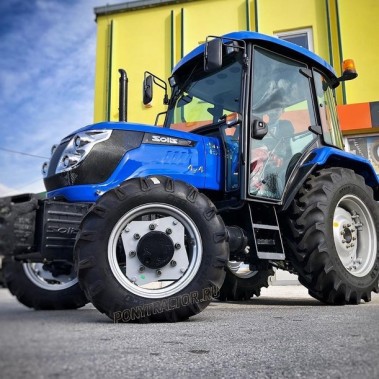 На минитрактор СОЛИС 50 с кабиной можно установить фронтальный погрузчик (КУН) и колеса с разными шинами.