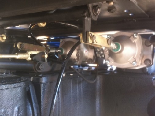 Управление движением трактора осуществляется двумя рычагами поворота, педалью муфты сцепления и педалью остановочных тормозов, воздействующих посредством пневмоусилителей следящего типа.